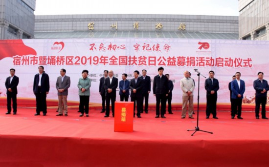 10月17日,宿州市暨埇橋區(qū)2019年全國(guó)扶貧日公益募捐活動(dòng)啟動(dòng)儀式在宿城銀河廣場(chǎng)隆重舉行。募捐現(xiàn)場(chǎng),我市愛(ài)心企業(yè)、單位、個(gè)人踴躍捐款,用實(shí)際行動(dòng)助力脫貧攻堅(jiān)。記者 董虎 攝